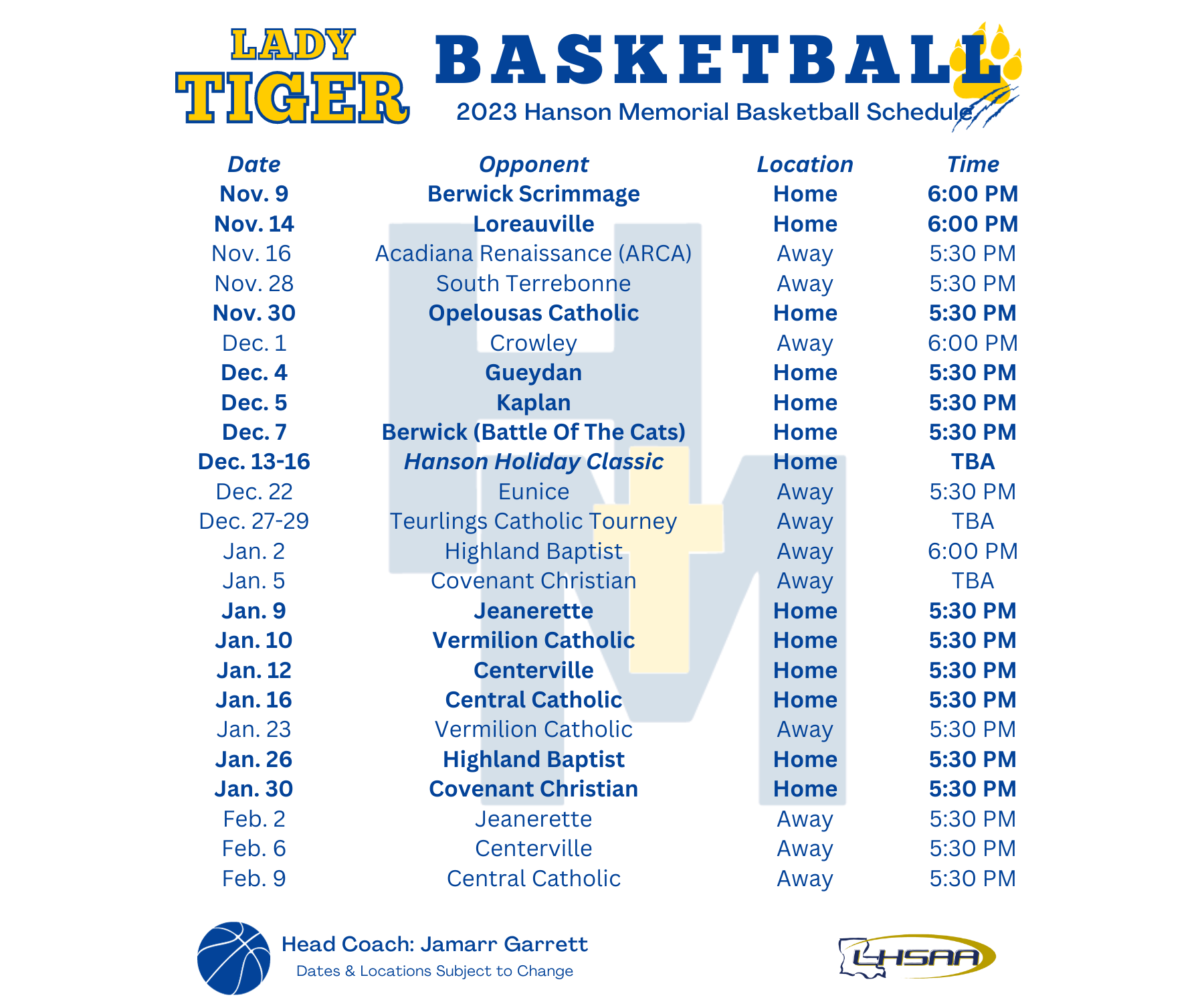 The Girls’ Basketball program at Hanson Memorial High School is steeped in many long-standing performance traditions. The Lady Tigers are often contenders in district placement as well as post-season play. We have numerous district titles, two state runner-up titles in 1985 and 1986, and the state championship in 1977. The Lady Tigers are known for their hard work and dedication to the team, school, and community. Our Lady Tigers are well-rounded individuals who are also accomplished in the field of academics. The majority of our players are annually represented on the All-District Academic teams as well as the All-State Academic teams.