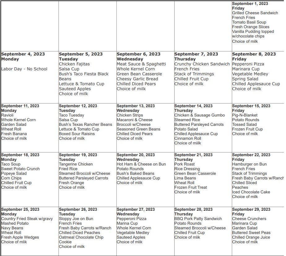 Lunch menus are linked here.